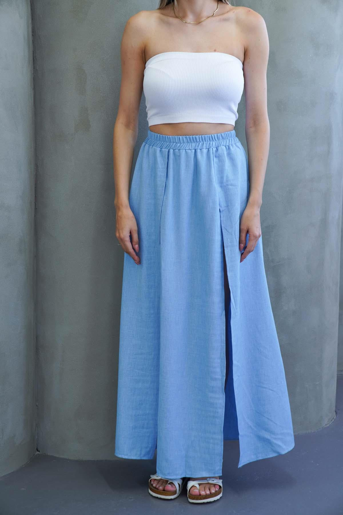 Bebe Mavi Yırtmaçlı Uzun Şort Etek