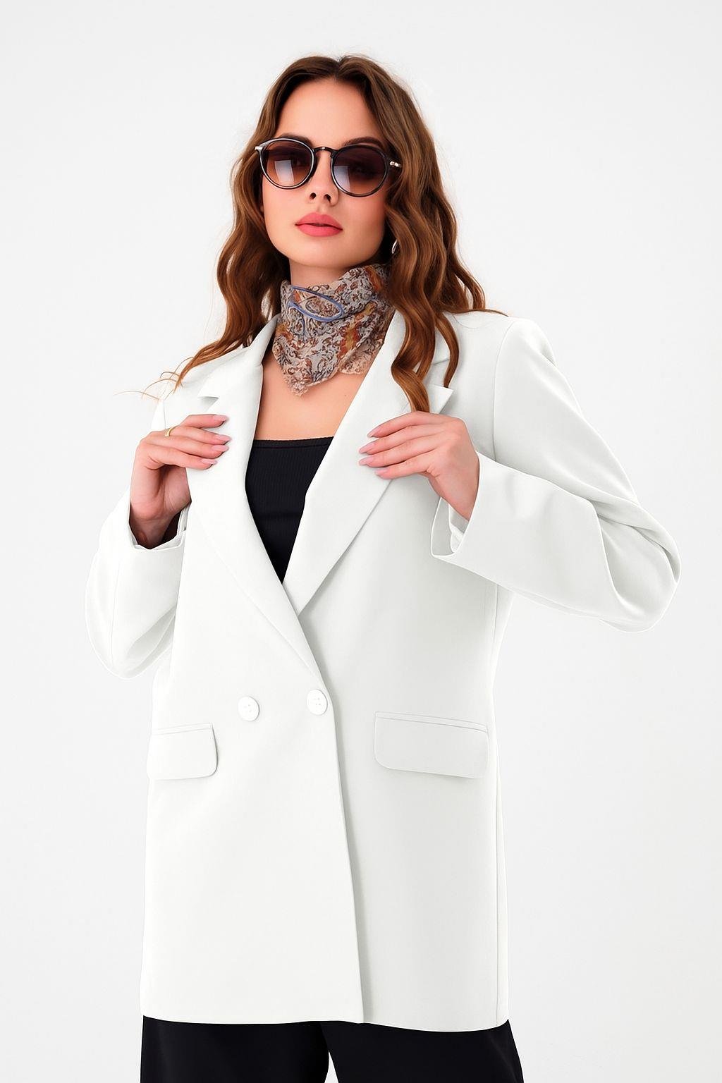 Beyaz Çift Düğmeli Blazer Ceket (HZL2001)