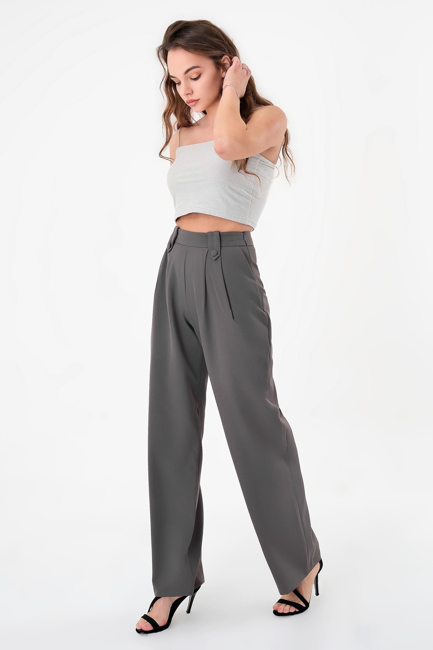 Kadın Antrasit Apoletli Yüksek Bel Palazzo Pantolon (HZL2317)