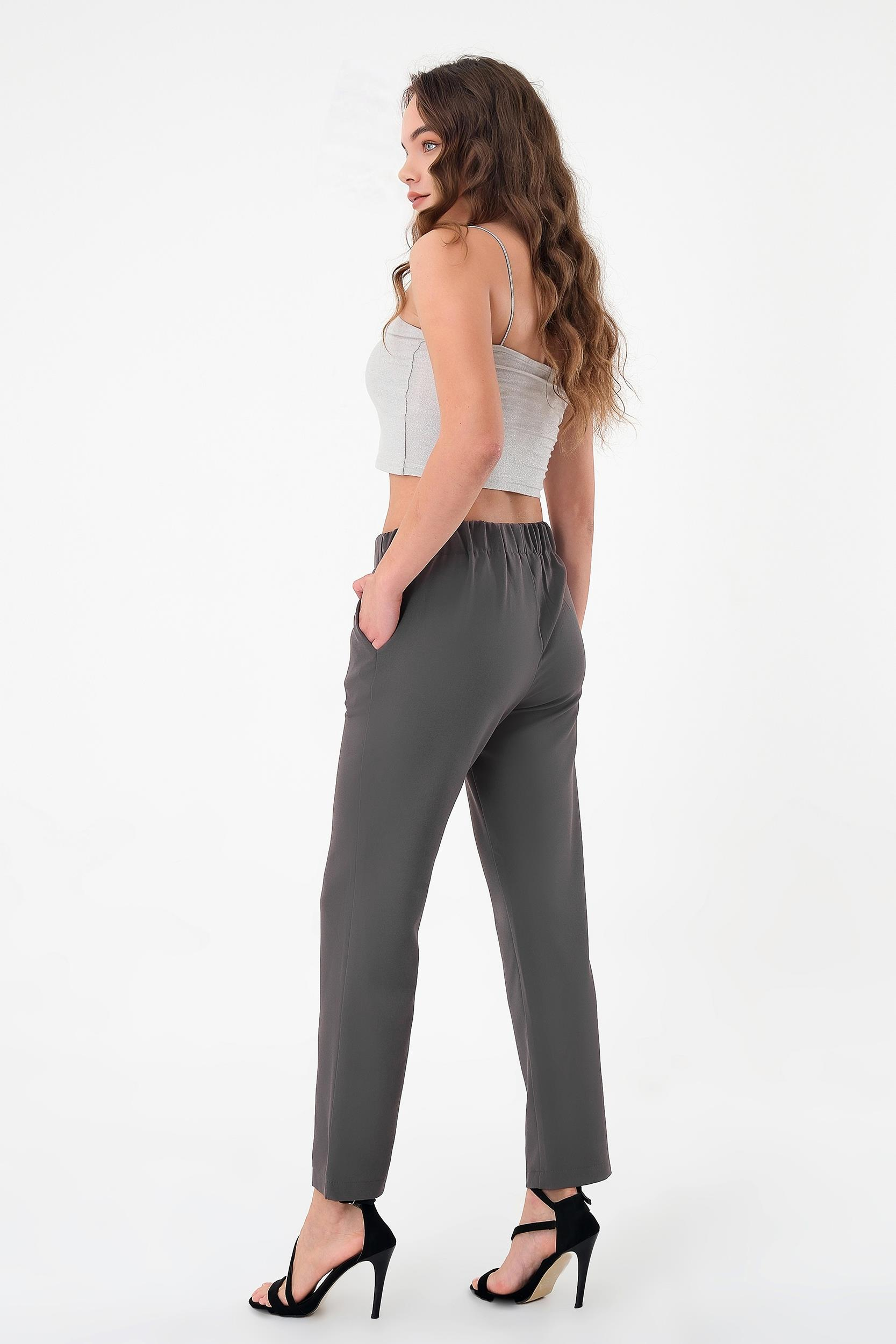 Kadın Antrasit Beli Lastikli Dar Kesim Pantolon (HZL2306)