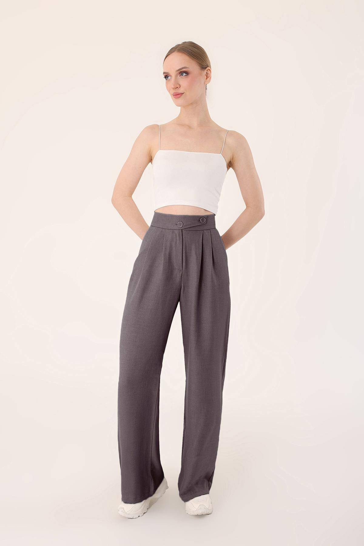 Kadın Antrasit Keten Karışımlı Kore Model Palazzo Pantolon (HZL2000)