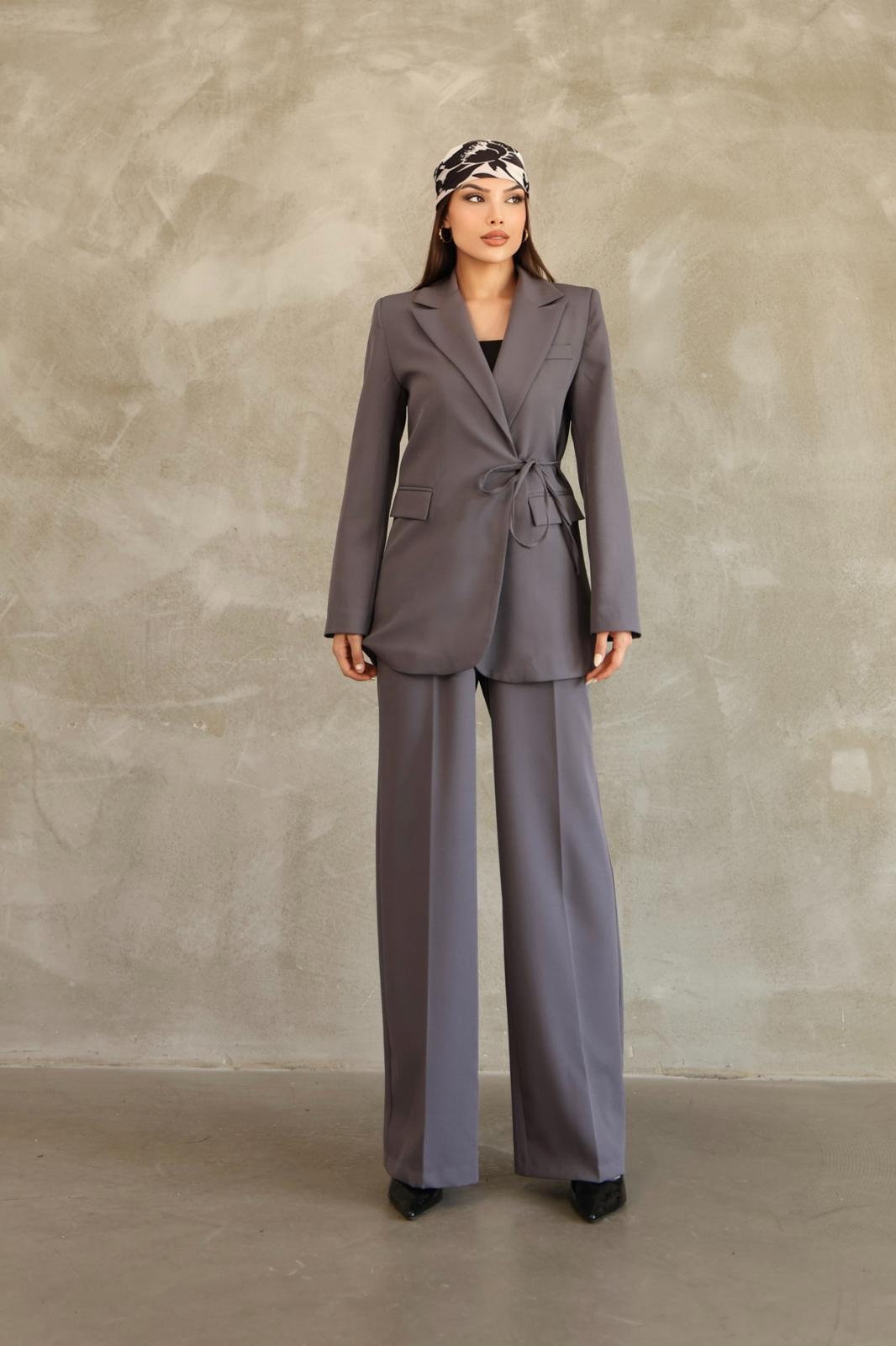Kadın Antrasit Yandan Bağlamalı Blazer Ceket Pantolon Takım (HZL4040)