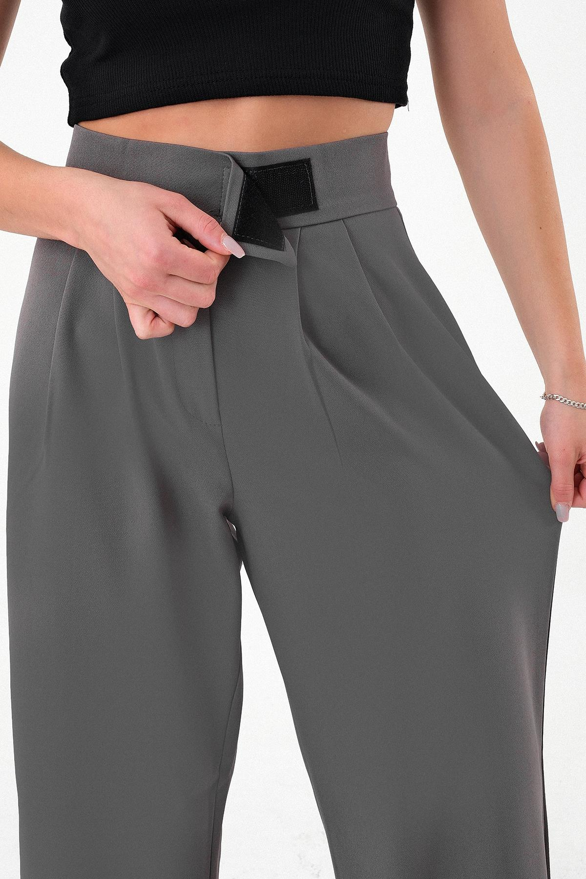 Kadın Antrasit Yüksek Bel Cırtlı Palazzo Pantolon (HZL2308I1V8446)
