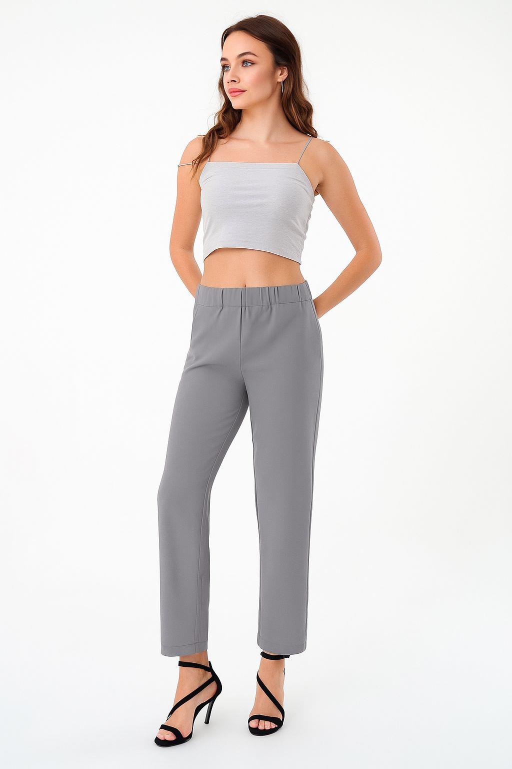Kadın Gri Beli Lastikli Dar Kesim Pantolon (HZL2306)