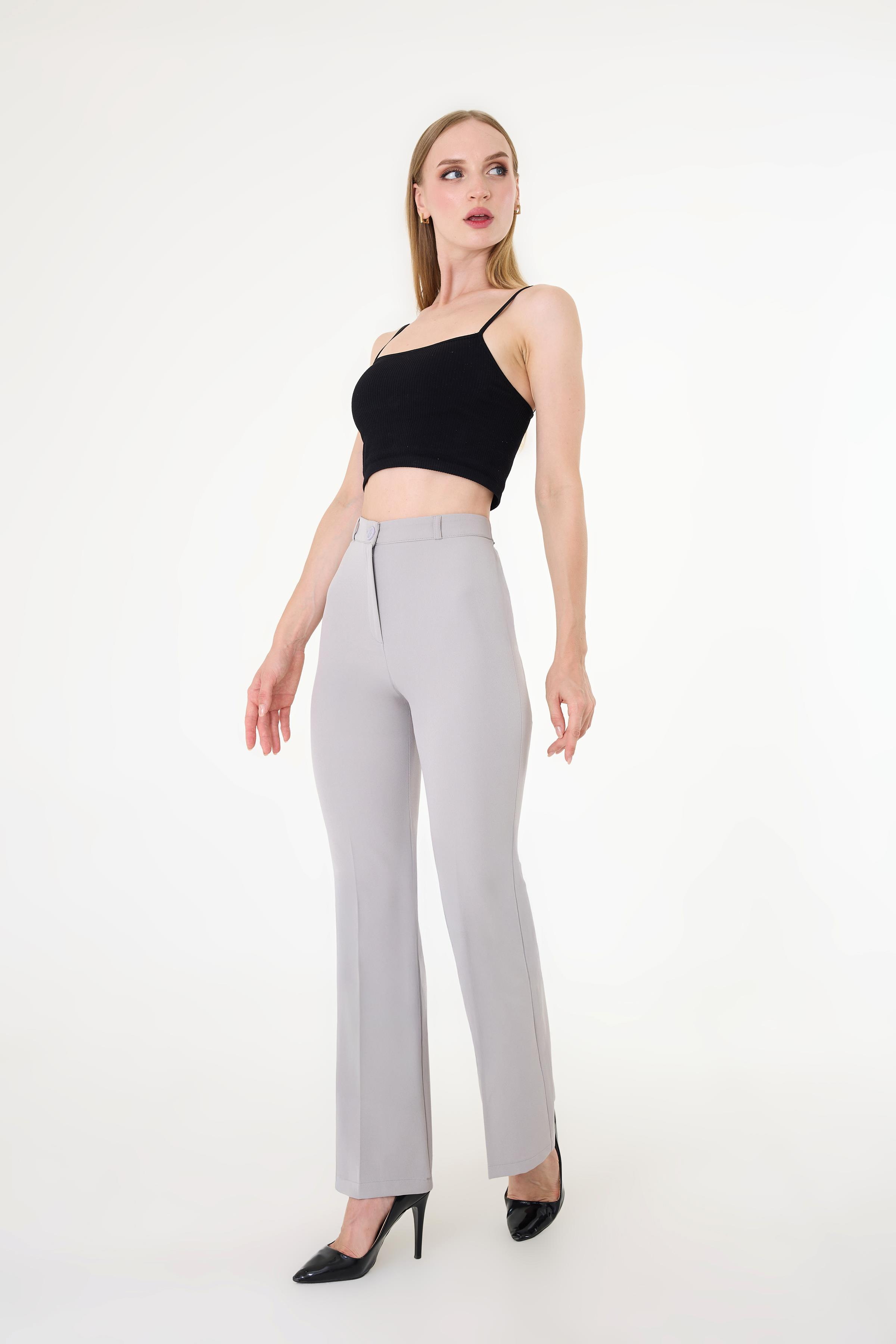 Kadın Gri İspanyol Paça Pantolon (HZL2330)
