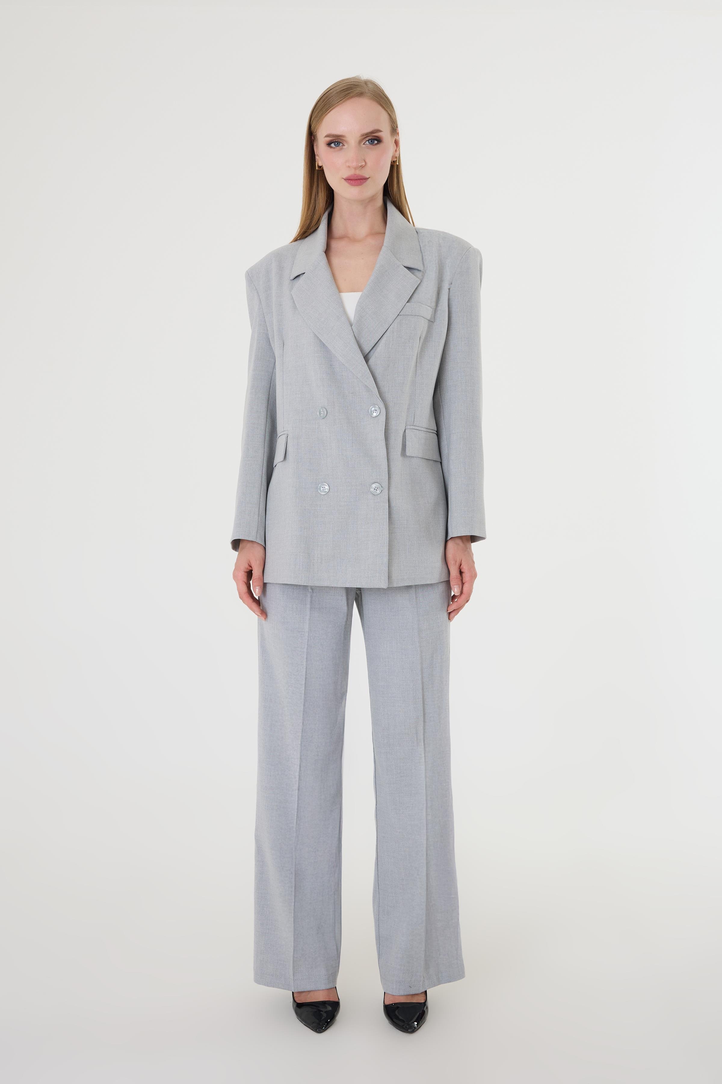 Kadın Gri Poliviskon Blazer Ceket Pantolon Takım (HZL4055)