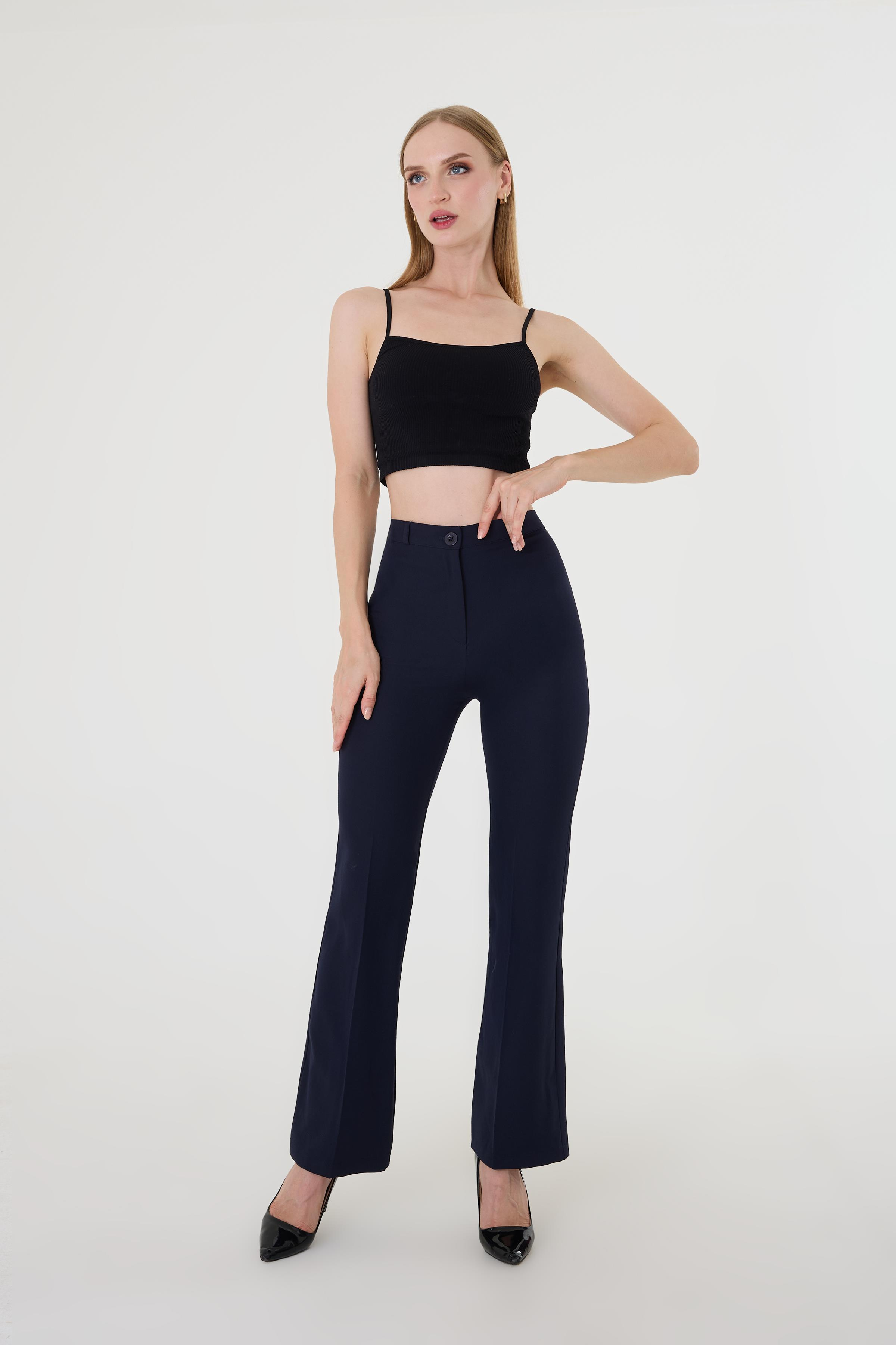 Kadın Lacivert İspanyol Paça Pantolon (HZL2330)