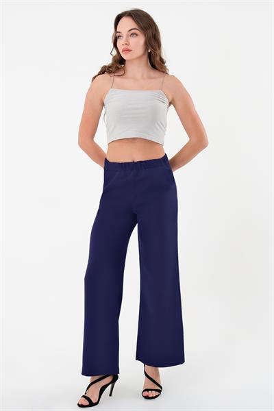 Kadın Lacivert Lastikli Palazzo Pantolon