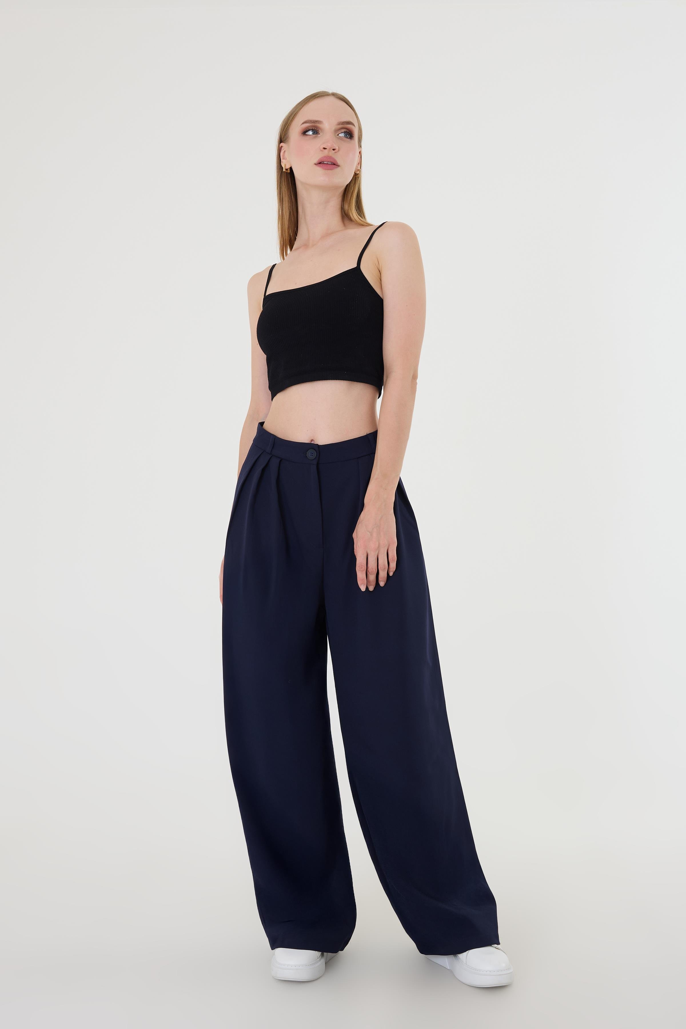Kadın Lacivert Pile Detaylı Palazzo Pantolon (HZL6020)