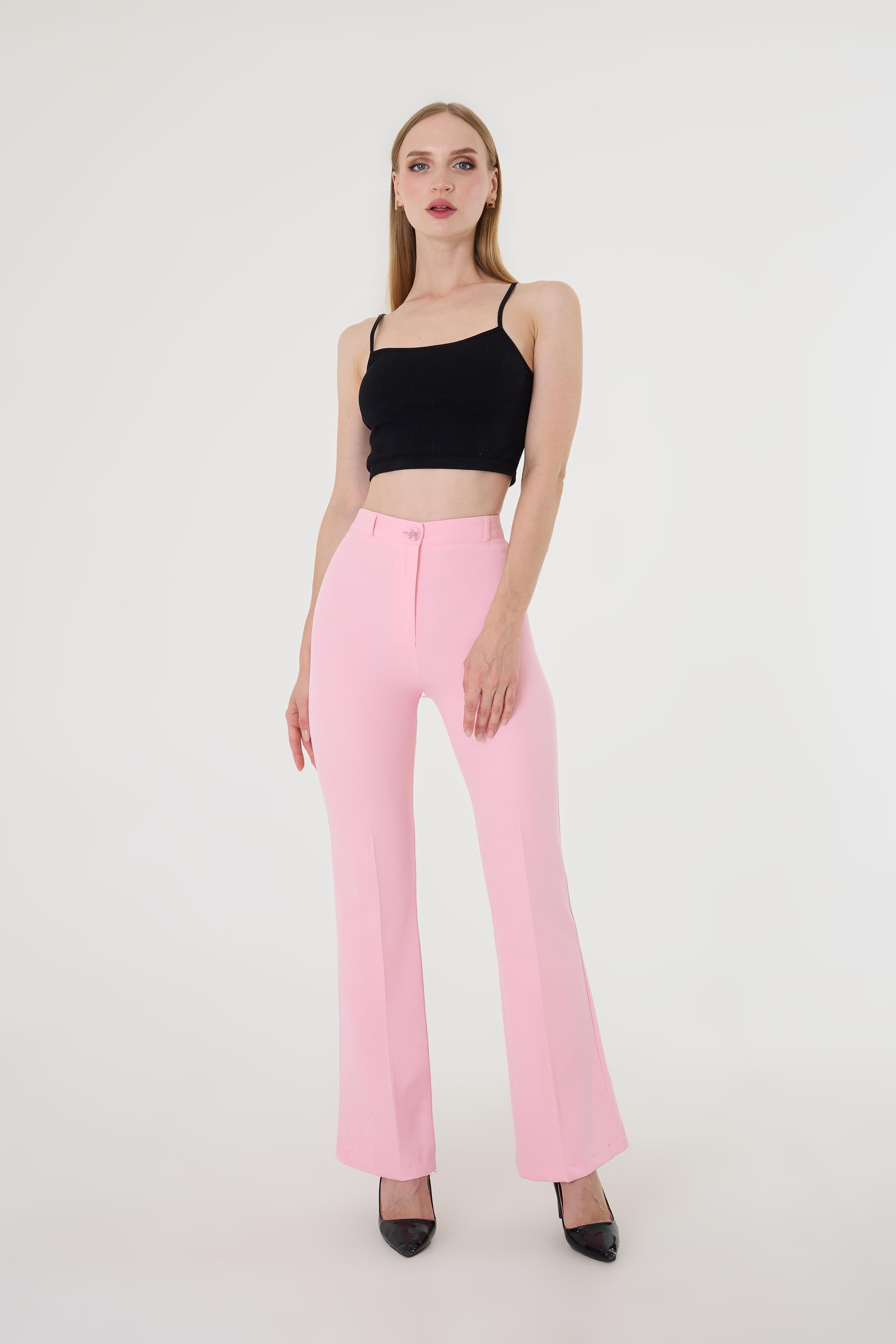 Kadın Pembe İspanyol Paça Pantolon (HZL2330)