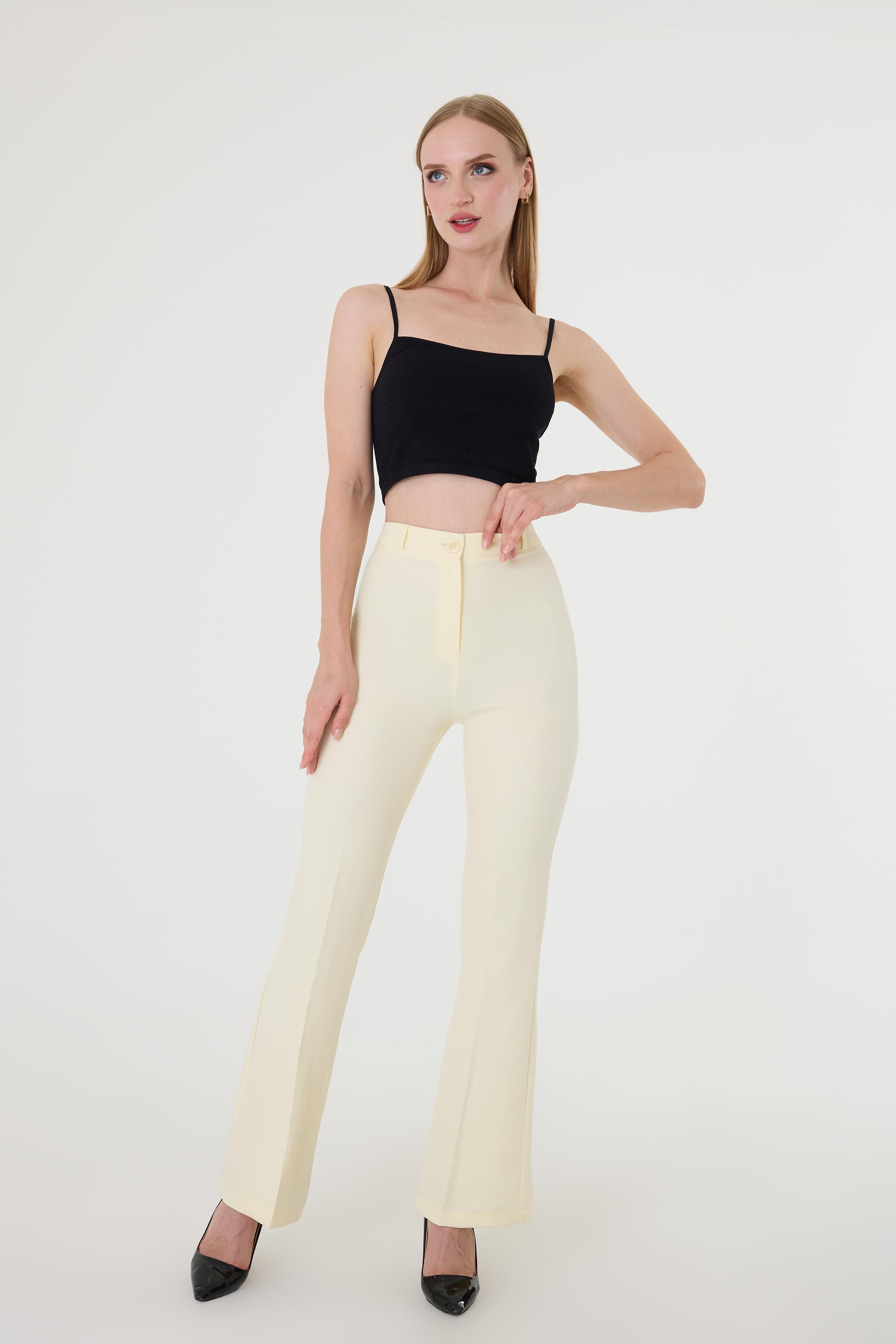 Kadın Sarı İspanyol Paça Pantolon (HZL2330)