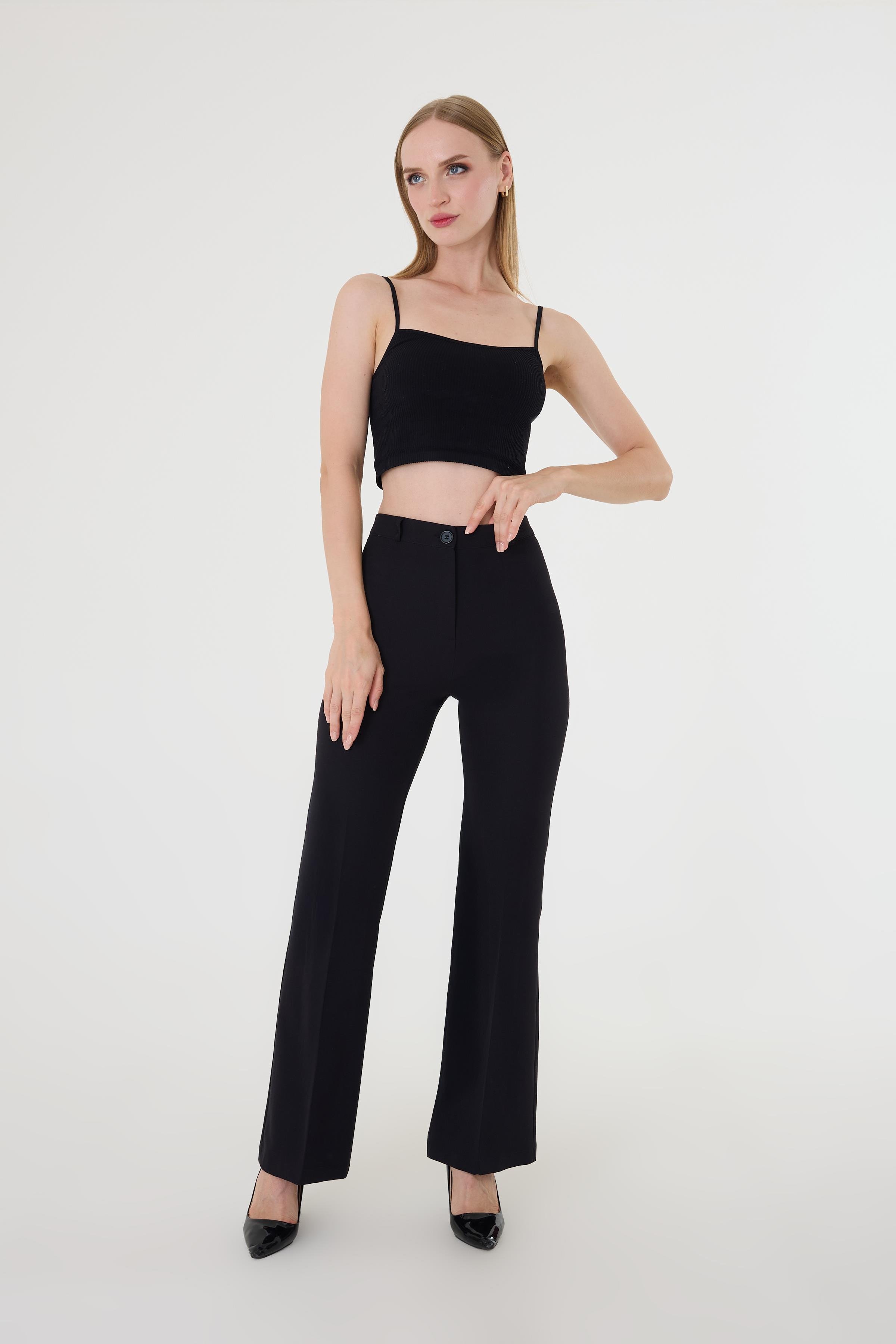 Kadın Siyah İspanyol Paça Pantolon (HZL2330)