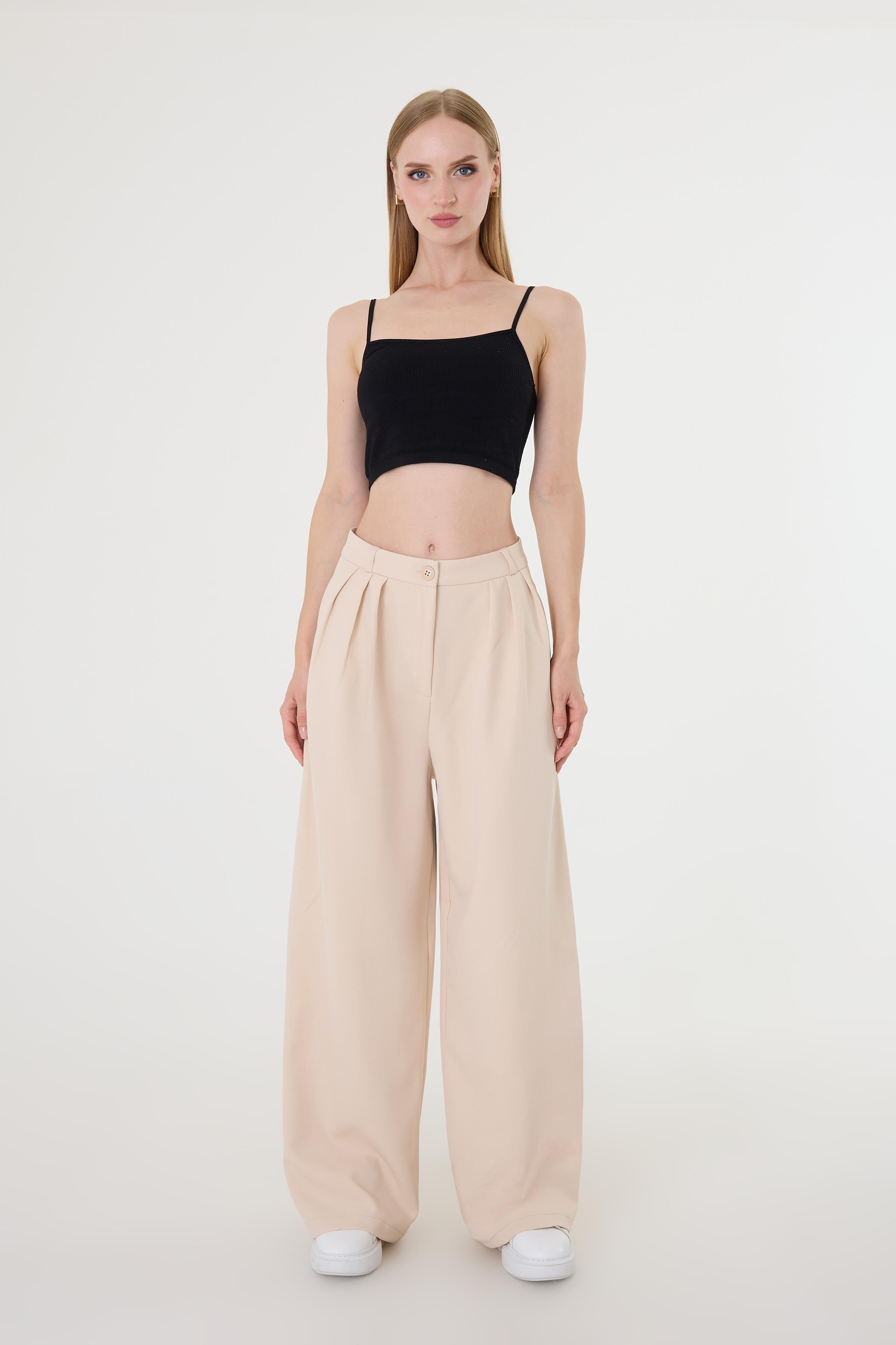 Kadın Taş Pile Detaylı Palazzo Pantolon (HZL6020)
