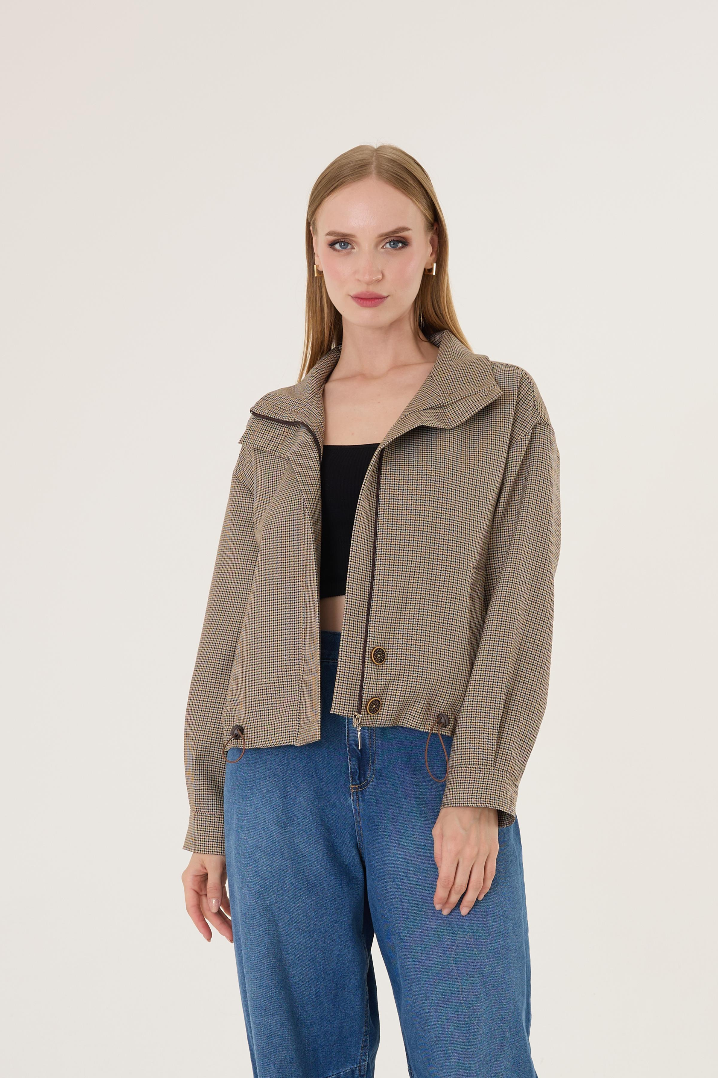 Kadın Vizon Kareli Bomber Ceket (HZL4060)