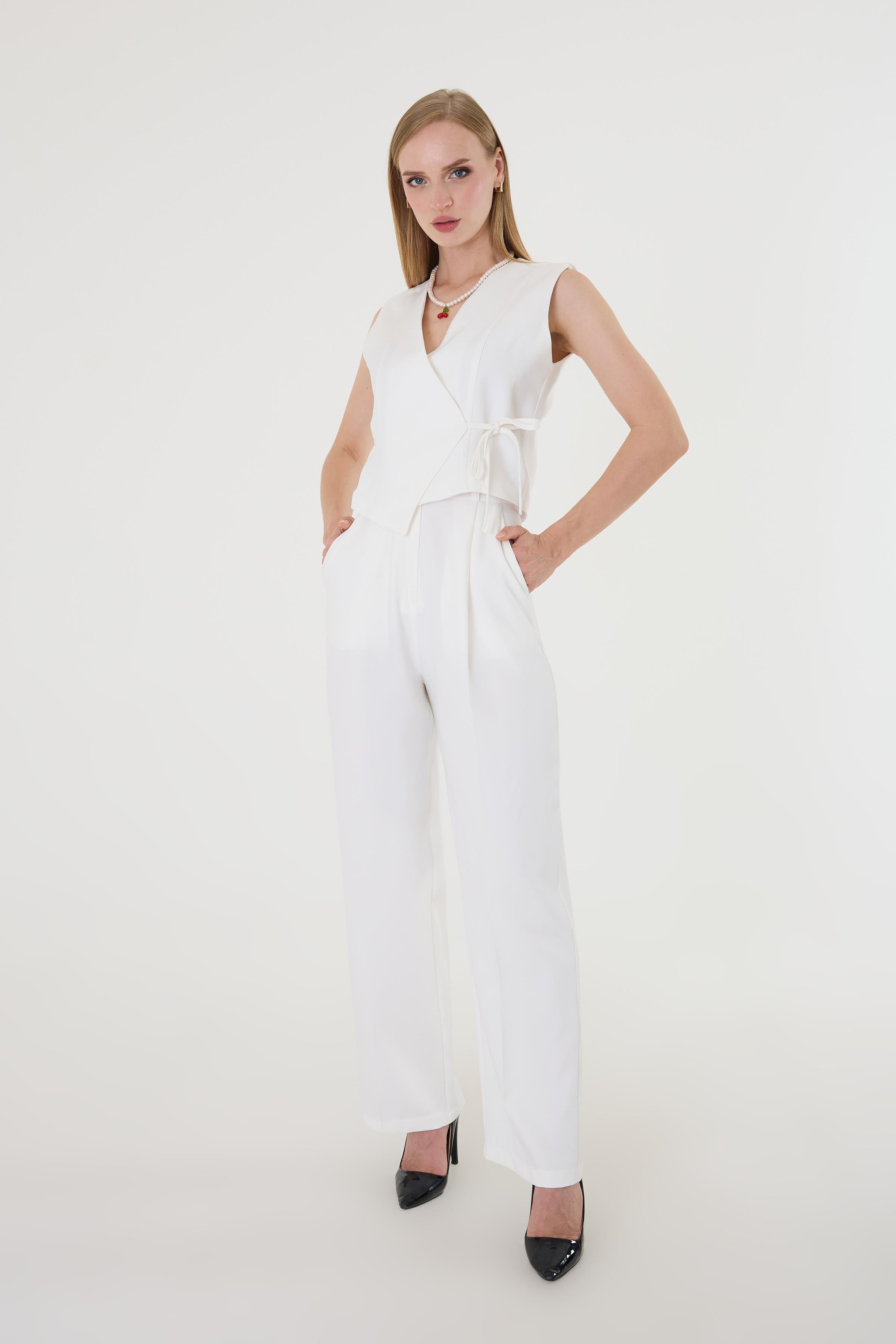 Kadın Yandan Bağlamalı Asimetrik Beyaz Yelek Takım