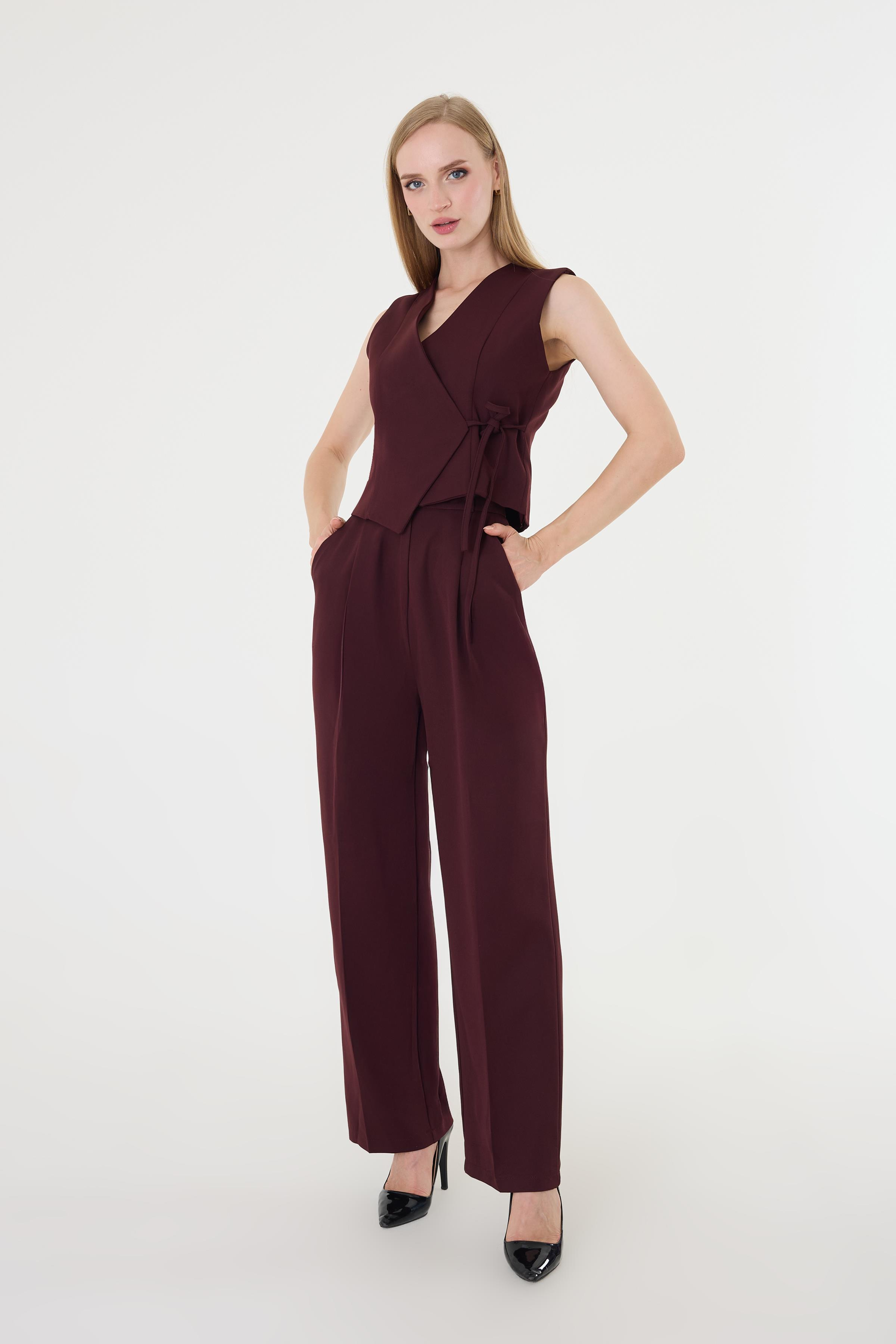Kadın Yandan Bağlamalı Asimetrik Bordo Yelek Takım