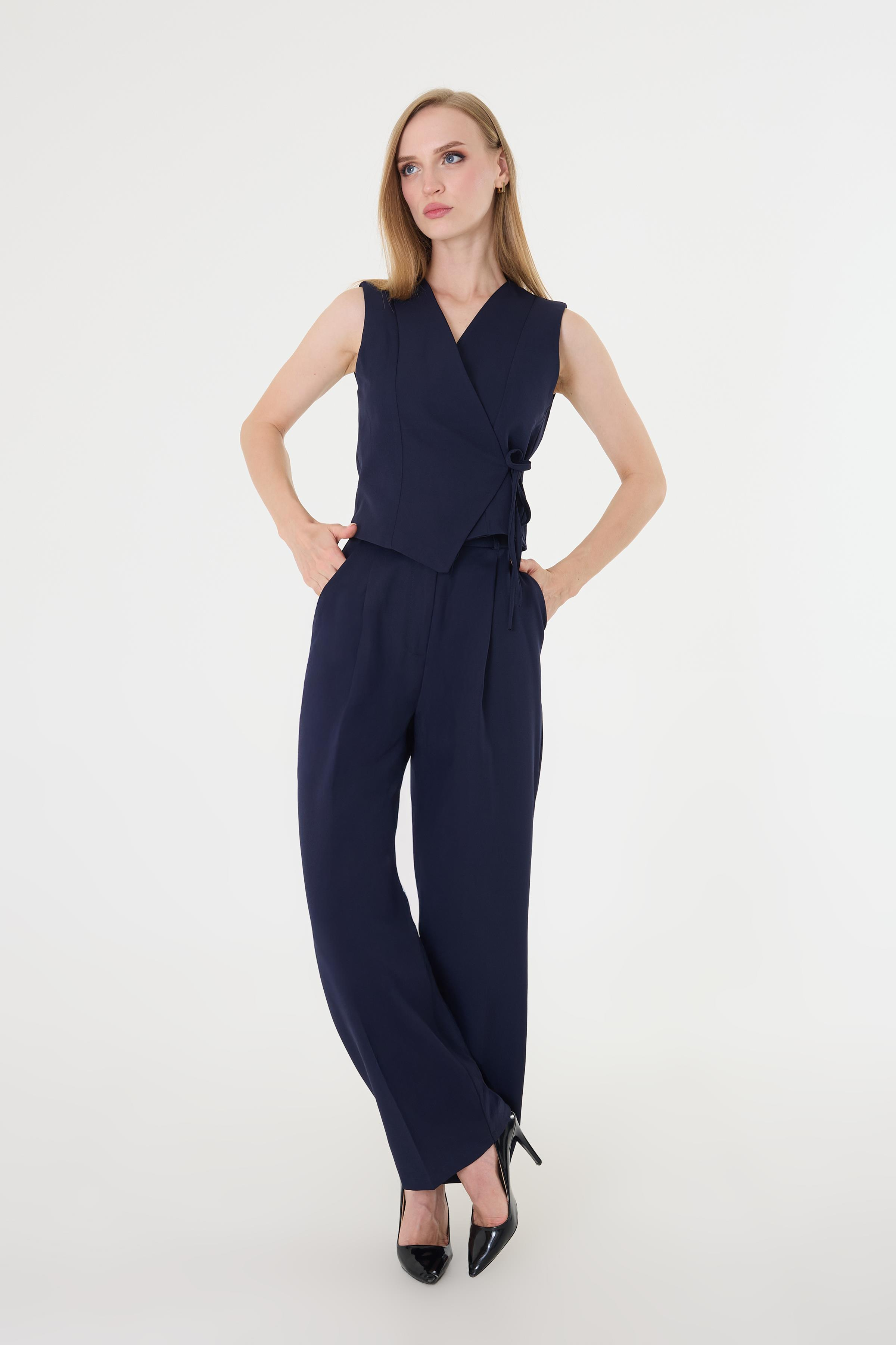 Kadın Yandan Bağlamalı Asimetrik Lacivert Yelek Takım