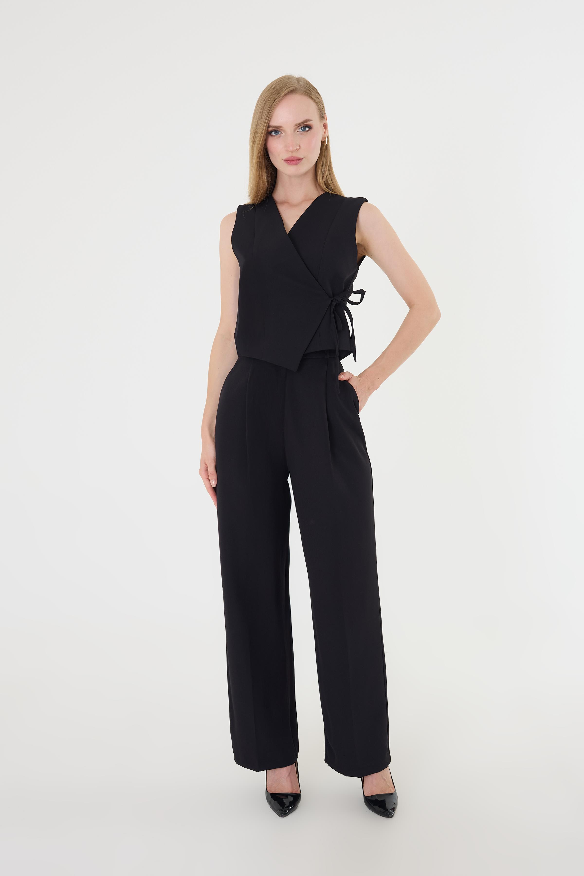 Kadın Yandan Bağlamalı Asimetrik Siyah Yelek Takım