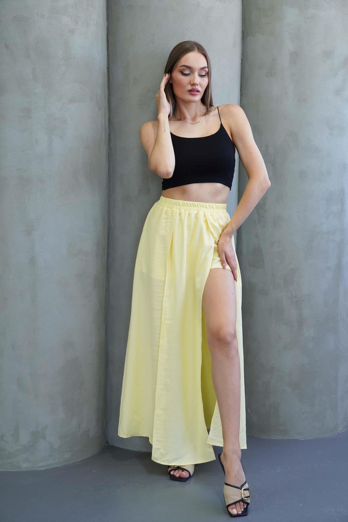 Sarı Yırtmaçlı Uzun Şort Etek (HZL4025)